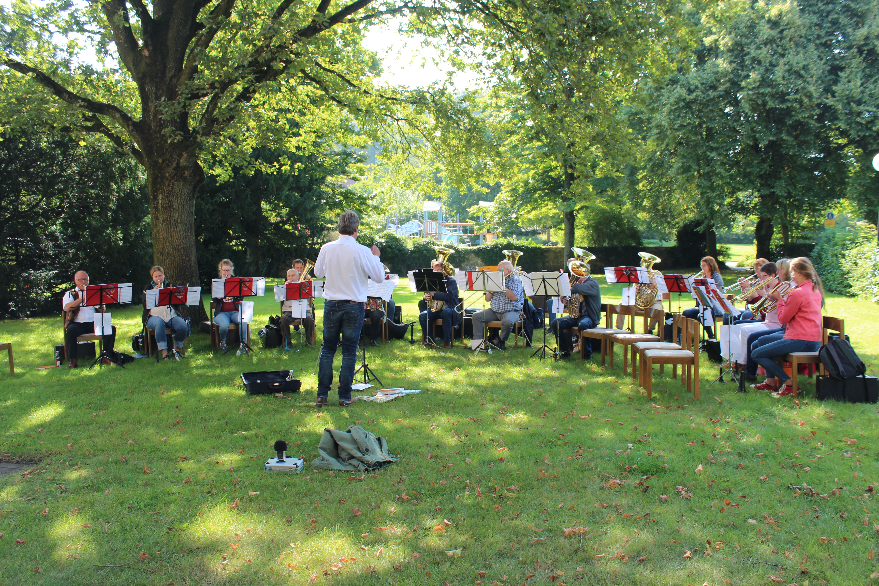 Die ganz große Feier, somit leider auch die erhoffte Spendenfülle durch viele Gäste, fiel zwar aus, doch der Festlichkeit des Gottesdienstes tat das keinen Abbruch. Corona-bedingt hatte die Diakonie Stiftung das geplante Fest im Kurgarten Schledehausen schweren Herzens abgesagt. Die vereinigten Posaunenchöre der Bissendorfer Gemeinden hatten es sich trotzdem nicht nehmen lassen zu kommen. Sie gaben auf der Kirchwiese ein Konzert, zur großen Freude der Gottesdienstbesucher, der Aktiven der DiakonieStiftung und der Kirchengemeinde.